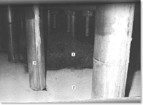 - Il combustibile fuso scendeva verso il basso inondando le sale sottostanti mescolandosi fortunatamente con la sabbia che, in grossa quantità, era sistemata intorno al reattore. Nello scendere si era via via raffreddato